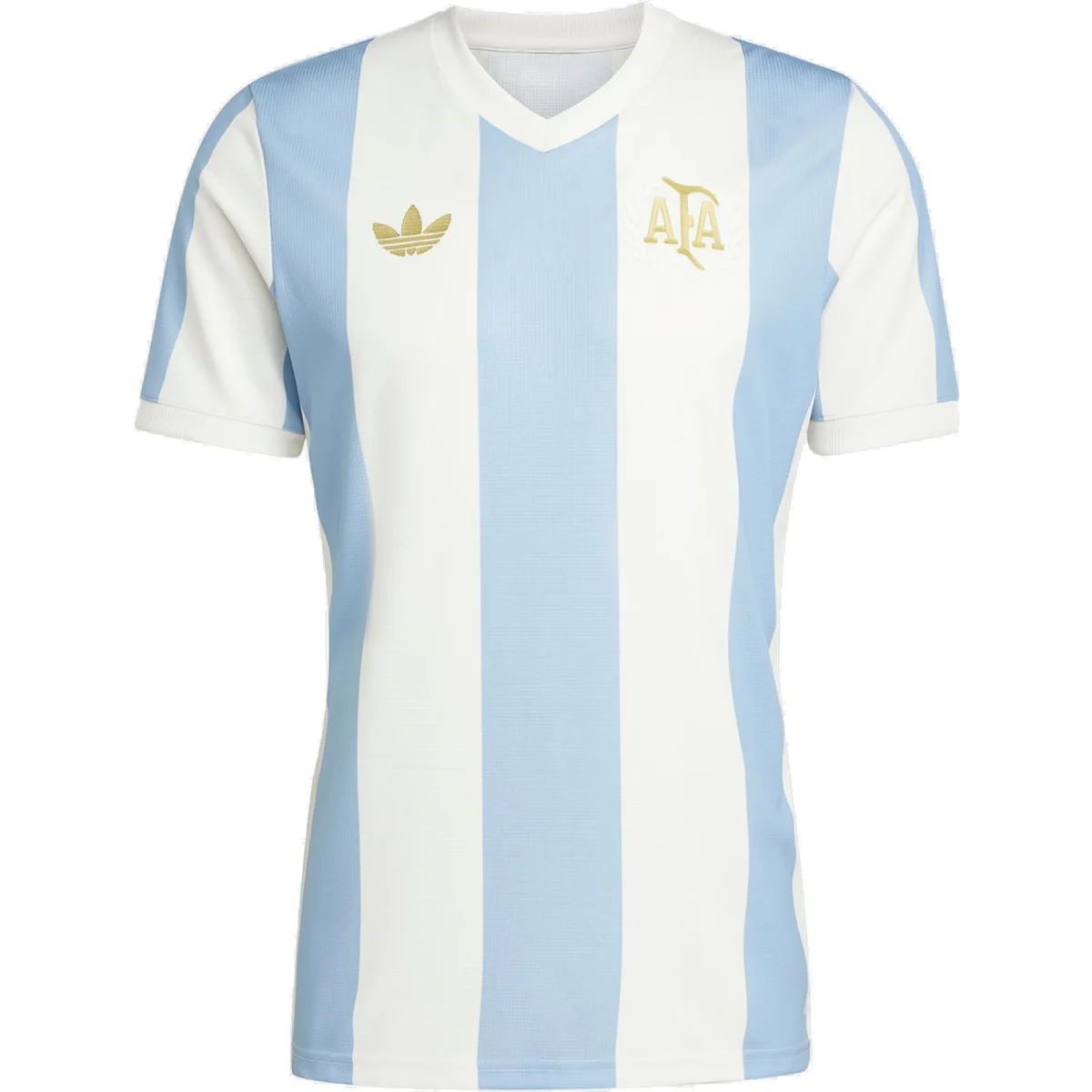 50年前、サッカーのユニフォーム製造がニッチから主流へと進化し、世界の大手スポーツブランドはトップチームにアプローチし、ユ50年前、サッカーのユニフォーム製造が主流となり、アディダスとアルゼンチン代表は1974年に提携。以来、ほぼ途切れずに続いているパートナーシップを祝うため、50周年記念ユニフォームが登場。ゴールドのアクセントと高級なディテールで、サッカー界で最も象徴的なパートナーシップを祝います。