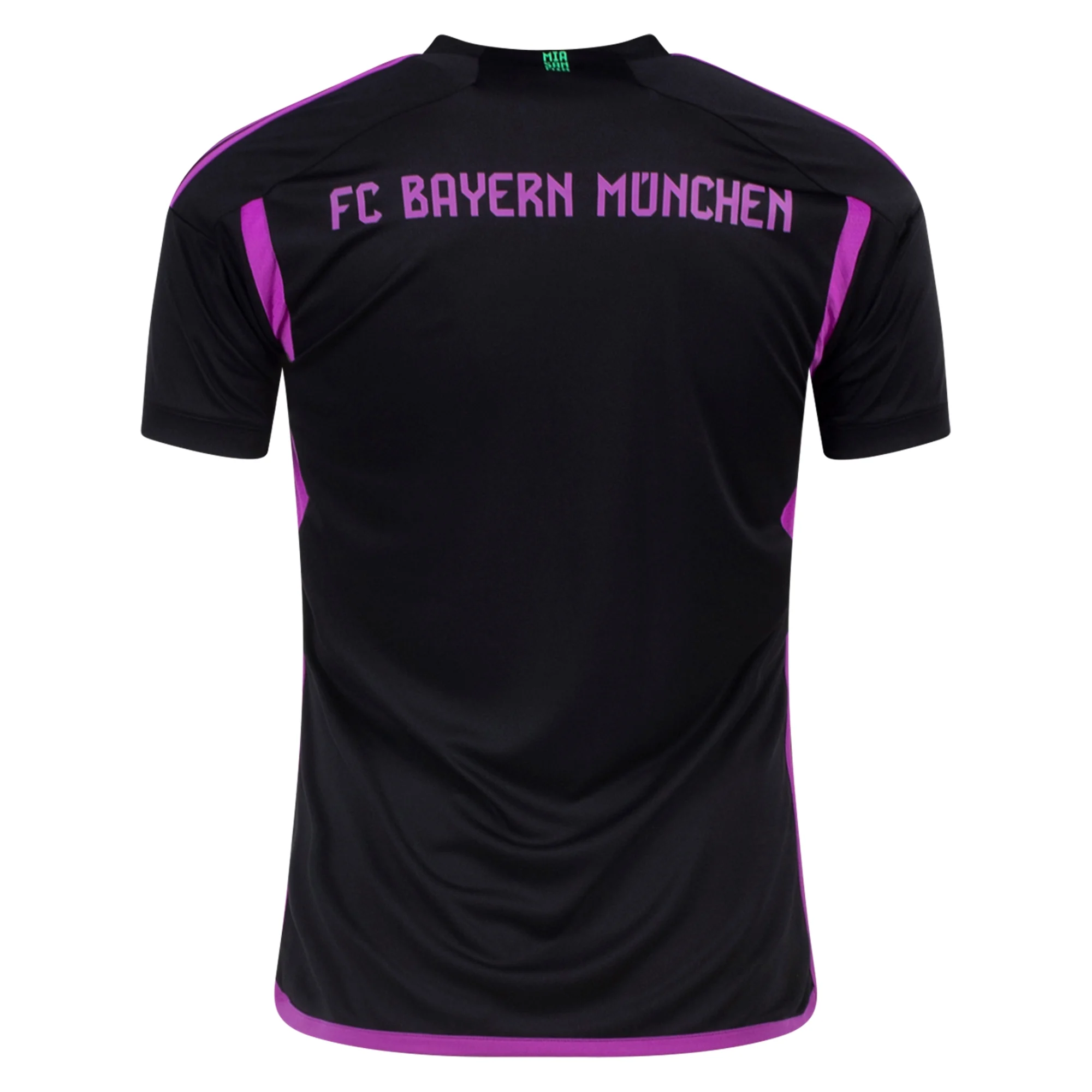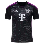 バイエルン・ミュンヘンの2023/24アウェイジャージは、世界を象徴するデザインです。ダークな色合いと世界地図を模した形状が、クラブのグローバルな存在感を強調しています。