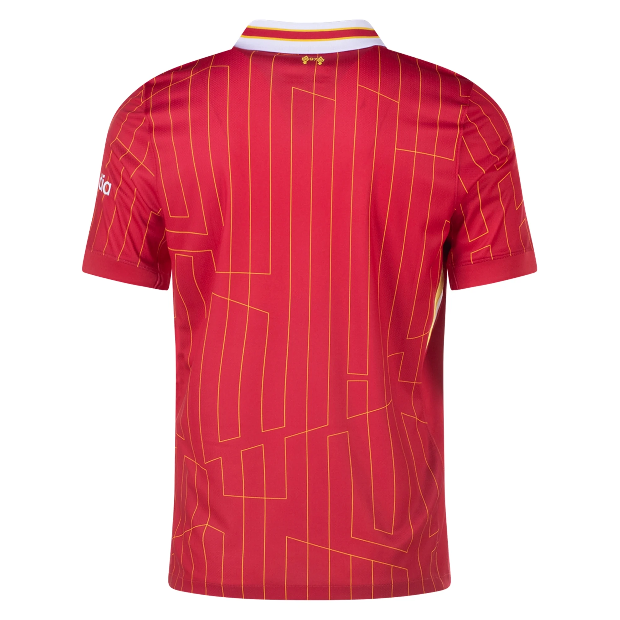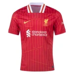 リヴァプールの24/25ホームキットは、1980年代へのオマージュに現代的なひねりを加えたデザイン。遠目にはクラシックなピンストライプ風に見えますが、近づくと「YNWA」の文字が全体に散りばめられた擬似ストライプが現れます。1984年の三冠時のキットを思わせる襟元に、淡いイエローのアクセントが加わり、伝統を保ちつつも新鮮な印象を与える一着です。