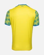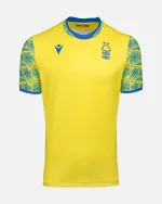 ノッティンガム・フォレストの22-23シーズン公式アウェイシャツは、ポリエステルピケ素材で作られており、イエローを基調としています。デザインは、象徴的なトレントブリッジの鉄骨模様から着想を得たブルーの昇華プリントが施されています。このトレントブリッジにインスパイアされたデザインは、襟とサイドパネルにもあしらわれており、襟と袖口はブルーで仕上げられています。ジャージの左胸にはブルーの刺繍入りフォレストのクレスト、右胸にはマクロンのロゴが入り、首の後ろには「COYR」の刺繍が施されています。今シーズンは右袖にプレミアリーグのパッチが標準装備されています。
