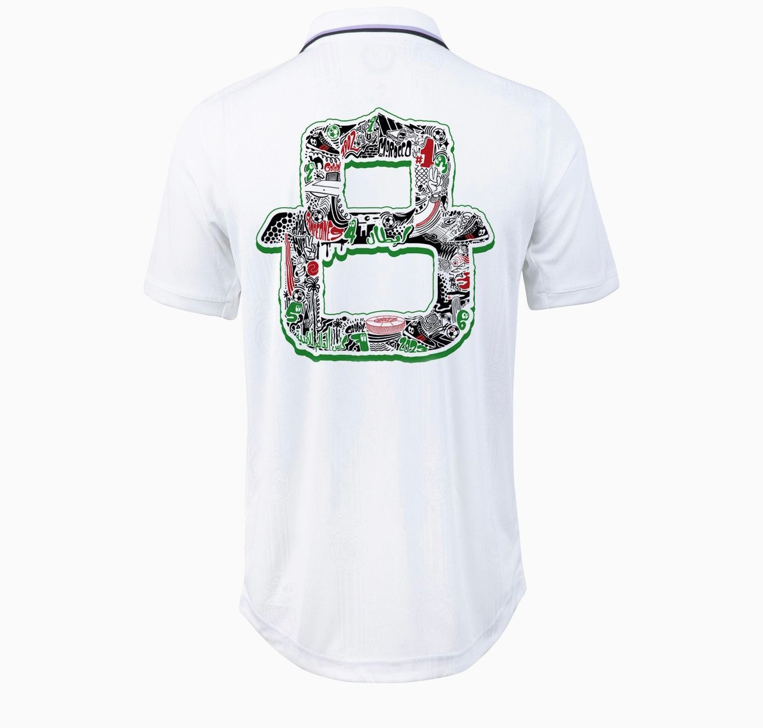 レアル・マドリード 2023 クラブW杯特別シャツは、22-23ホームシャツに金のW杯バッジと背番号「8」を追加。8はクラブの世界一回数を示します。デザインは開催国モロッコから着想。