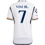 最新のレアル・マドリード 23/24 ホームジャージは、金とネイビーが組み合わさり、数々のタイトルを誇るクラブにふさわしいデザインです。王家の象徴である2色が一体となっています。