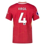 リヴァプールの24/25ホームジャージは80年代を称えつつ独自の工夫を加えています。遠目にはピンストライプに見えますが、実は「YNWA」のグラフィックが全体に散りばめられた擬似ピンストライプです。襟は1984年の欧州カップ優勝ユニフォームを意識し、ライトイエローのディテールが爽やかさを添えています。