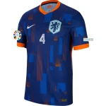 オランダ 24/25 オーセンティック アウェイユニフォームは、ミニマリストな幾何学的デザインで3色の青を使用し、襟や袖口、ライオンをモチーフにしたグラフィックで有名なオレンジがアクセントに。襟内には現代的なデザインの王冠グラフィックが施されています。